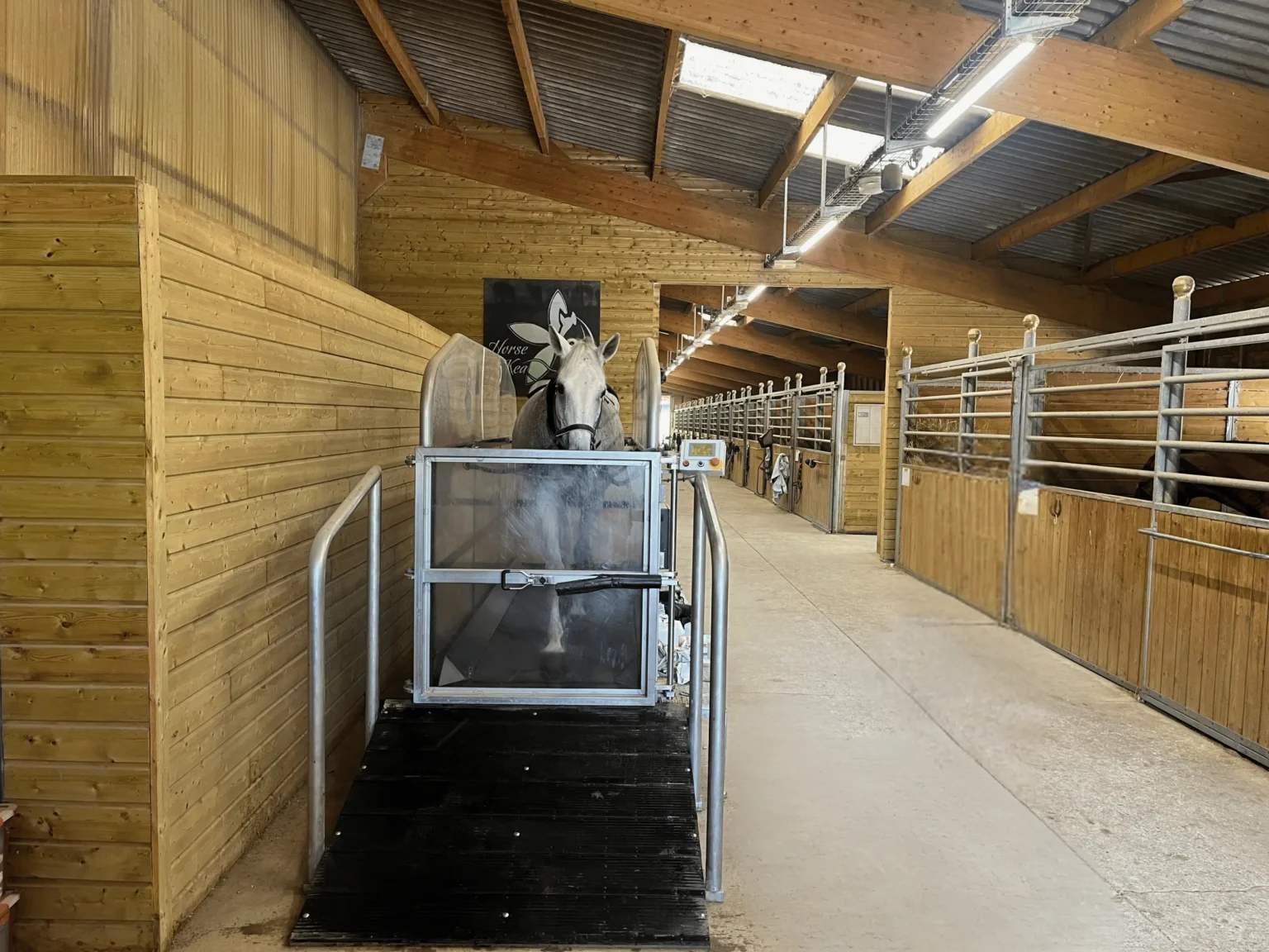 Les écuries disposent de 30 box, chacun équipé de tapis en caoutchouc et d’abreuvoirs automatiques, de 2 douches avec eau chaude et froide, de 3 solariums, d’un aquatraîneur, d’un spa d’eau salée, d’une plaque vibrante, et d’un marcheur pour 4 chevaux, garantissant un confort optimal pour leurs chevaux.